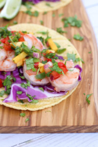 Sauteed Shrimp, Sliced cabbage and cilantro and our fresh-cut mango pico de Gallo