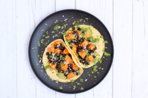 Our ready-made guacamole with chopped sweet cooked potato, black beans, cilantro, and cotija cheese